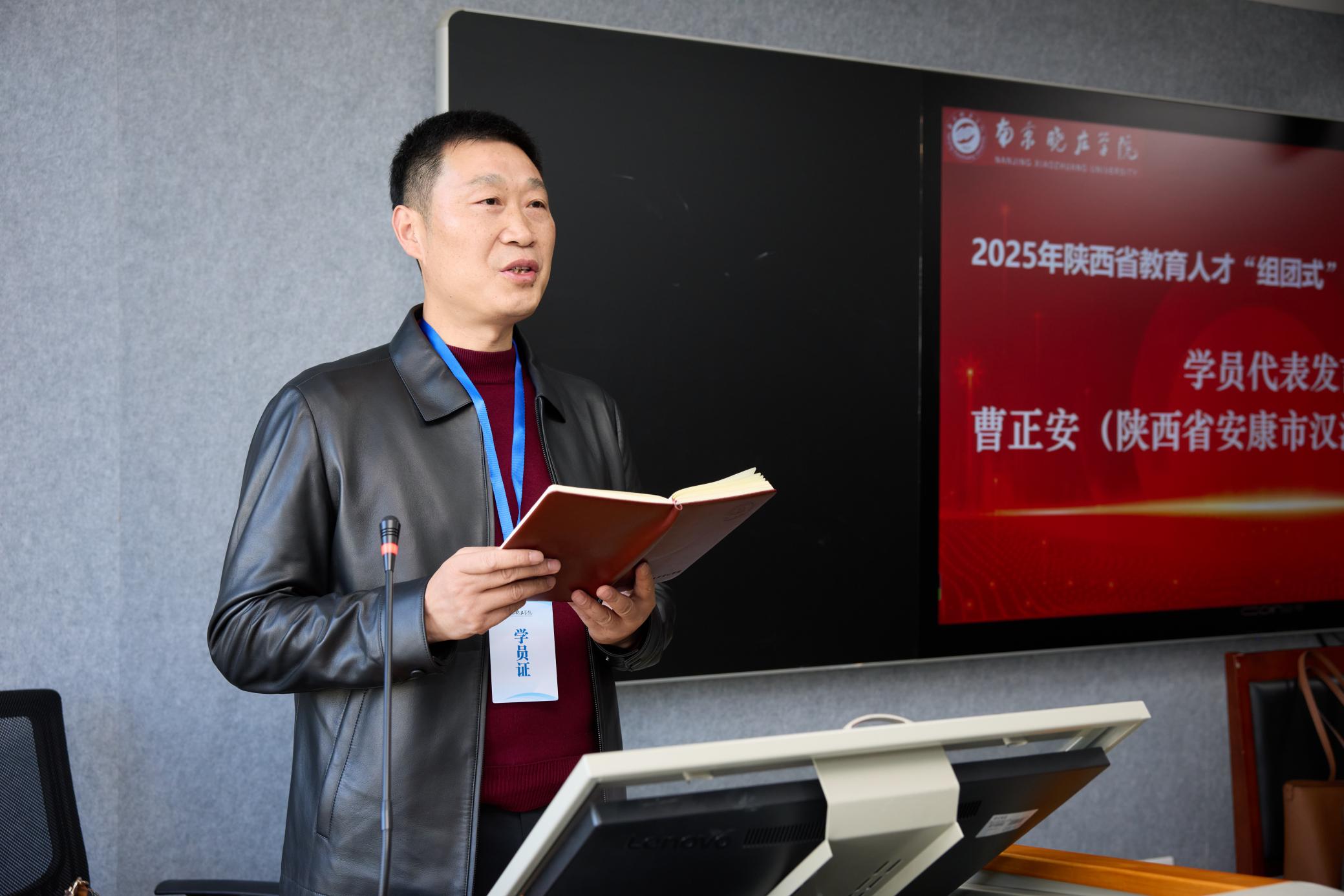 最后,参训学员班长、安康市汉滨区大河中学曹老师代表全体学员发言,他结合秦巴山区教育实际,分享了学校依托本地红色资源开发英语校本课程的做法,并期待借助南京晓庄学院提供的优质平台,在科研思维、课堂改革、学生核心素养培育等方面得到系统提升,诚挚表达了参训学员对南京晓庄学院外国语学院的衷心感谢。