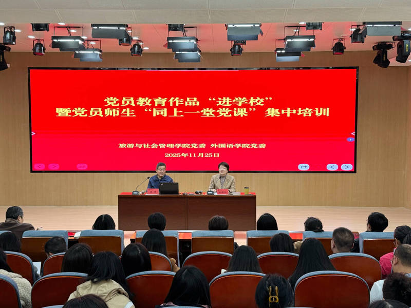 11月25日,外国语学院、旅游与社会管理学院在崇一楼文北200报告厅联合举办党员教育作品“进学校”暨党员师生“同上一堂课”集中培训。本次培训由外国语学院党委书记王静萍主持,旅游与社会管理学院、外国语学院师生党员共同参加。