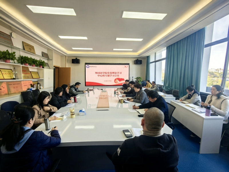 12月3日下午,外国语学院党委理论学习中心组在文北308召开专题学习(扩大)会,集中学习党的二十届四中全会精神。外国语学院党委委员、领导班子成员、各支部书记以及各办公室负责人参加学习,校党委常委、宣传部部长李震列席旁听,学院党委书记王静萍主持会议。