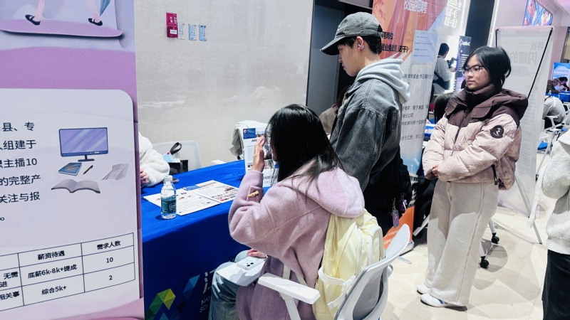 双选会现场人头攒动,供需对接氛围热烈。30家优质企业线下参展,涵盖跨境电商运营、海外市场推广、外贸跟单等多个核心岗位,同时有6家企业同步开启云端招聘通道,为无法到场的学生提供求职便利,“线下面谈+线上补位”的模式极大拓宽了对接范围。