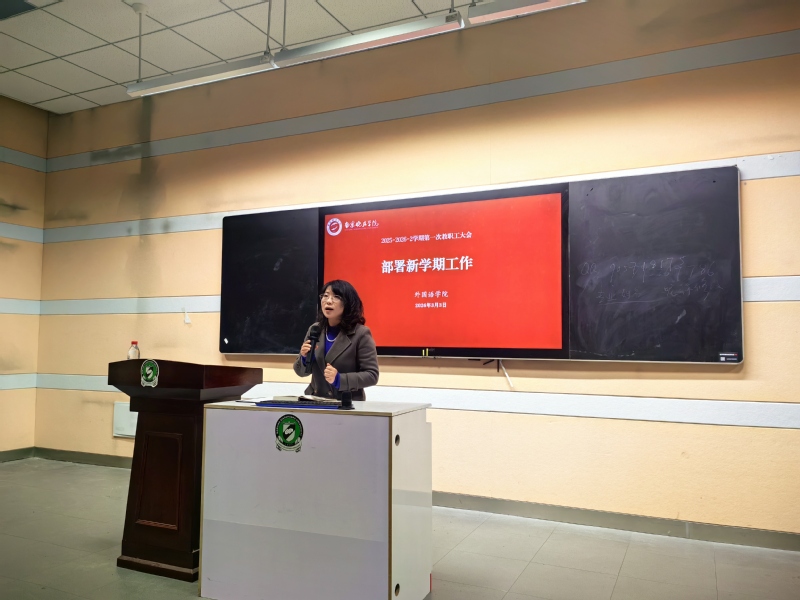 为全面部署新学期各项工作,凝聚全院教职工奋进力量,3月3日,外国语学院在文北301召开新学期第一次全体教职工大会。学院领导班子及全体教职工参加会议,会议由王静萍书记主持。