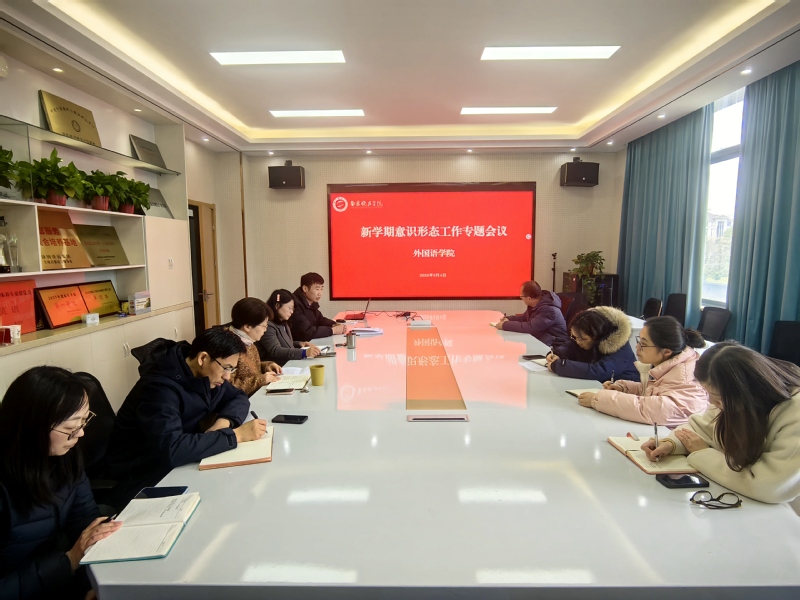 3月4日下午,外国语学院在文北308会议室召开新学期意识形态专题工作会议,学院党政领导班子、综合办公室主任、全体辅导员参加会议,会议由学院党委书记王静萍主持。