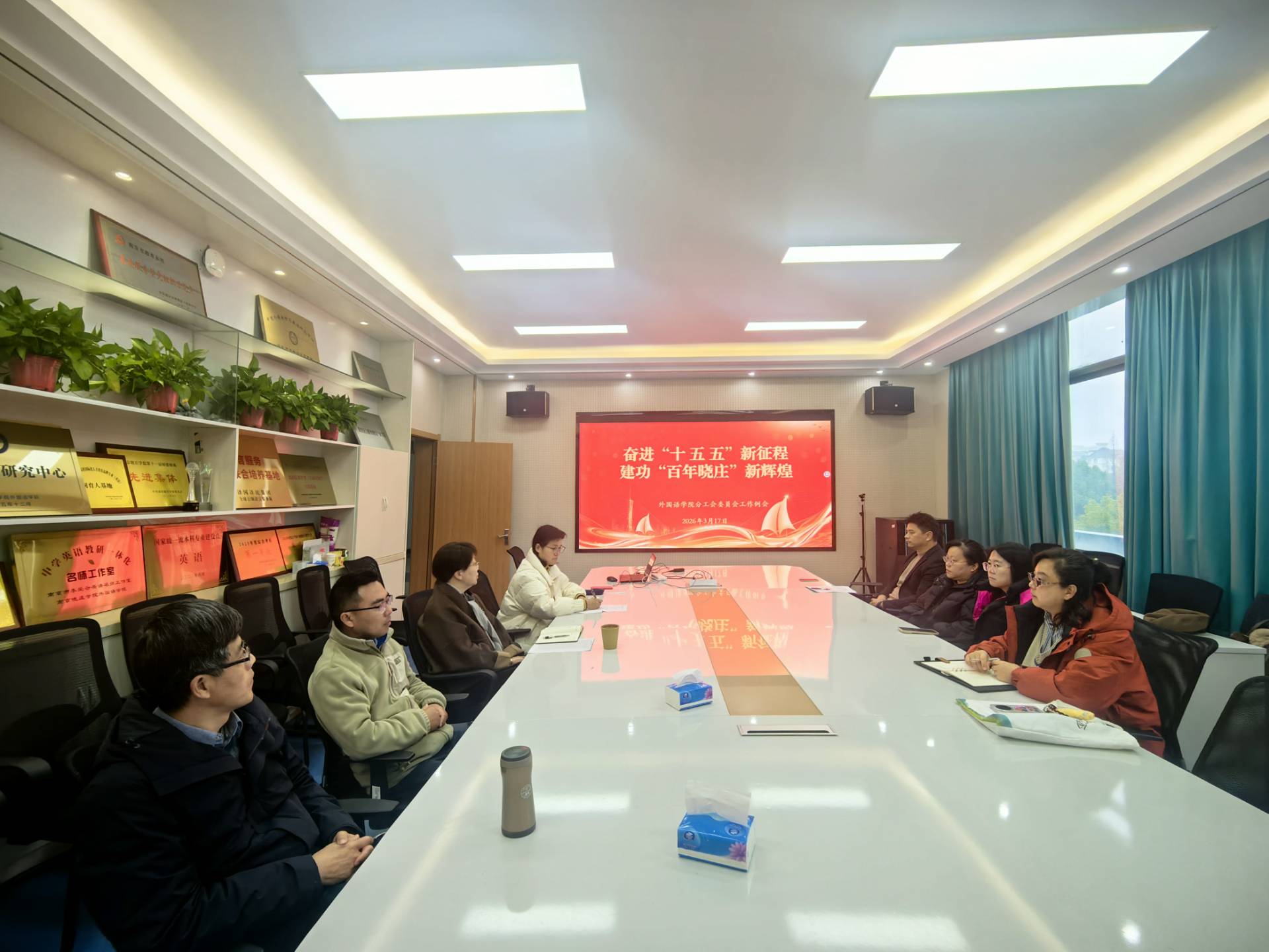 为深入贯彻校工会工作部署,谋划新学期工会工作,3 月 17 日上午,外国语学院分工会召开以“奋进‘十五五’新征程, 建功‘百年晓庄’新辉煌”为主题的新学期工作例会。会议由分工会主席黄兰主持,学院党委书记王静萍及全体工会委员参加会议。