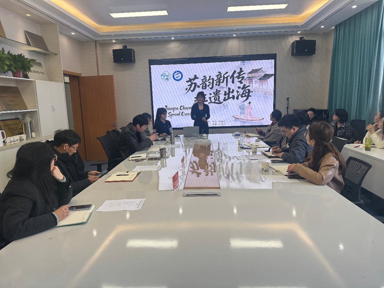 随后,商务英语专业学生代表就大创项目“苏韵新传、非遗出海”进行路演,聚焦江苏非遗的国际化传播与电商出海路径。企业嘉宾对项目给予积极评价,并从行业实践、市场对接、传播策略等方面提出指导意见。