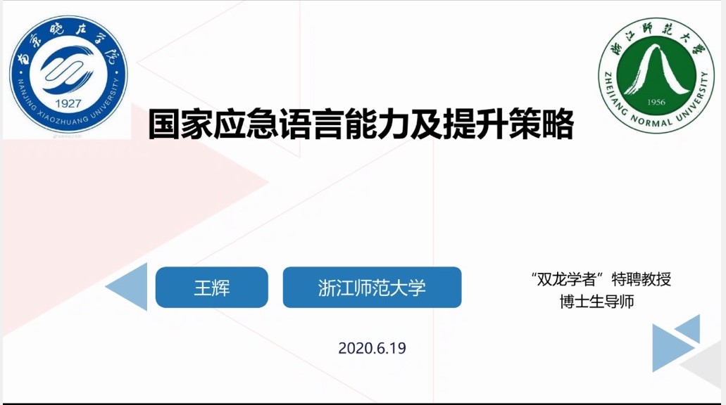 6月19日,浙江师范大学“双龙学者”特聘教授、中国语言学会语言政策与规划研究会副秘书长王辉教授应邀为我院做了题为《国家应急语言能力及提升策略》的学术报告。讲座以腾讯会议线上报告的形式进行,外国语学院师生聆听了此次精彩的报告。