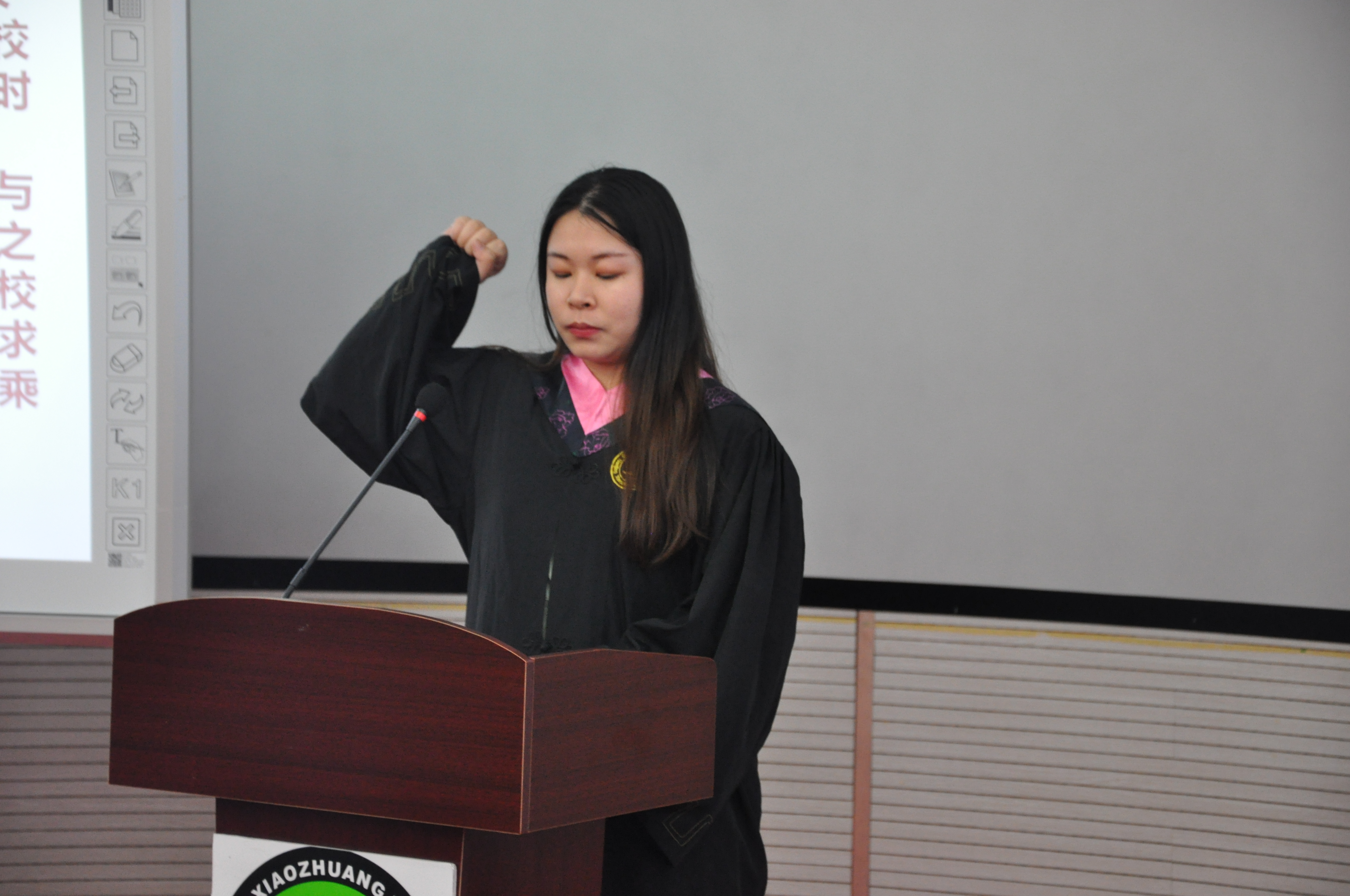 骊歌轻响,更向远方。“晓庄的四季,最是那一抹流长。”由优秀毕业生代表16日语2班班长杨璐瑶同学带领全体2020届毕业生进行了毕业宣誓。