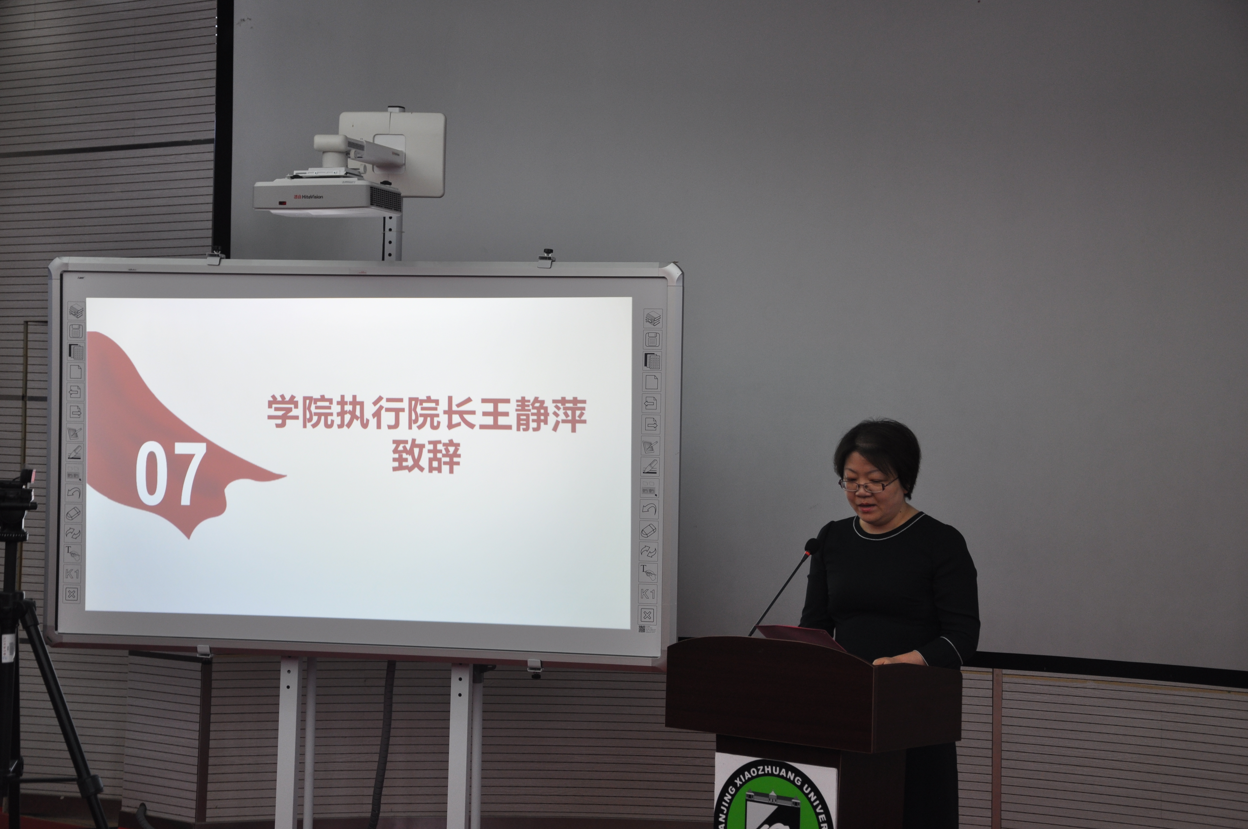 最后,学院执行院长王静萍为毕业典礼致辞,她首先对全体毕业生顺利完成学业表示热烈的祝贺和诚挚的祝福。祝愿毕业生们:都能成为“所向无敌”的强者;都能成为“不惧风雨”的勇者;都能成为“胸怀天下”的仁者;都能成为“知行知止”的智者。希望毕业生们兼具国际视野与家国情怀,拥有“数风流人物还看今朝”的自信,“饱读天下书,笑看人间事”的豁达,更需要有“千磨万击还坚劲,任你东西南北风”的顽强。将外语不仅视为一门语言,更将其当作一座通向外部世界的桥梁、一件与世界沟通的工具,最大程度地将所学习的理论知识应用于未来实践之中。这样,才能不负韶华、不枉青春。