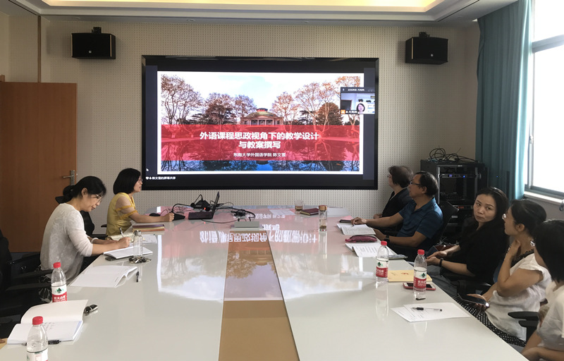 9月14日下午,外国语学院迎来了新学期课程思政改革首场研讨活动,吸引了线上线下70余名老师积极参加,研讨由副院长汪璧辉主持,并特邀东南大学陈文雪博士为大家做报告。2020年度,陈老师获得了全国首届外语思政教学大赛英语组特等奖。通过选题、教学设计、教案撰写和参赛反思四个环节,陈老师与各位老师分享了她参赛的经验和思考,大家受益匪浅,深刻感受到陈老师对课程思政元素的精心挖掘与精准凝练,对思政教育主线展开的精妙设计与精彩呈现。线上线下的老师们纷纷向陈老师就外语类课程思政推进过程中遇到的问题和困惑请教探讨。