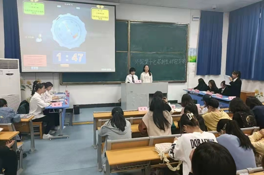 10月29日晚,外国语学院第十七届新生杯辩论赛决赛在元培楼100教室落下帷幕。商英1班和英师1班一路过关斩将、乘风破浪,最终挺进决赛。此次比赛的辩题为“当代年轻人是否应该乘风破浪”,双方辩手围绕着这一辩题展开了激烈的辩论。赛前,双方都在紧张地准备之中。开篇立论环节,正方一辩首先对“年轻人”和“乘风破浪”分别下定义,指出当代年轻人乘风破浪更容易打破传统实现个人价值,为社会为国家做出贡献。并引用罗曼罗兰的名言“生命很快就要逝去,一个机会不会出现两次”和海娜师这一新兴职业的例子,论述了当代年轻人乘风破浪的必要性和重要性。反方一辩也不甘示弱,围绕当代年轻人知识基础不扎实,认知能力较弱等特点,论述了当代年轻人应该夯实基础,稳中求进的观点。正方辩手则认为即使年轻人在乘风破浪中遇到挫折和失败,失败成本也是较低的。随着时间一分一秒地流逝,场上的火药味也越来越浓,你来我往,唇枪舌剑。自由辩论时间双方更是针锋相对,不放过对方的任何一个漏洞。最后经过评委的仔细斟酌,决出反方一辩为最佳辩手,商英1班为胜出方。此外评委还针对双方的优缺点进行了专业的点评,并简单地进行了外院院队的招新宣传。这次活动给新生辩手们提供了一个表现自己风采、表达自己观点的舞台;同时让她们认识到自己的不足,使辩论技巧和逻辑思维能力得到提升;让观众们看到了多样化观点的碰撞,极大地丰富了学生们的课外生活。