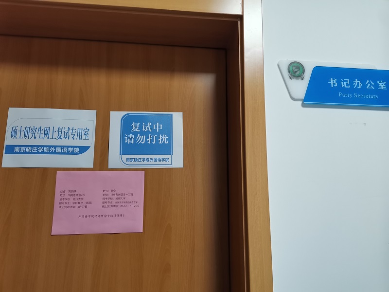 外国语学院党政领导高度重视学生考研复试工作,学院在充分调研学生线上复试需求的基础上,积极联系调配院领导办公室、会议室、阅览室、实训室等场所作为复试专用室,并对场地进行检查布置。根据复试具体时间安排,学生在辅导员处预约登记,制定复试需求安排表,张贴提醒标识,并安排参加复试学生提前进行设备调试,有力保障考研学子线上复试环境。
