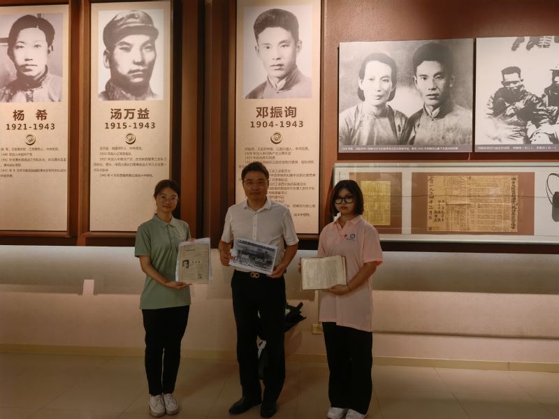 青春向党,“译”路同行。红色记“译”暑期社会实践团在雨花台烈士纪念馆开展红色文献整理翻译活动。在专业老师的指导下,实践团成员运用专业知识整理翻译了侵华日军在苏南地区情报资料、雨花英烈邓振询生平材料等馆内典藏文献。8月3日是邓振询烈士牺牲79周年,实践团代表携翻译材料前往纪念馆捐赠并向先烈敬献鲜花,在实践过程中接受了生动的红色教育。