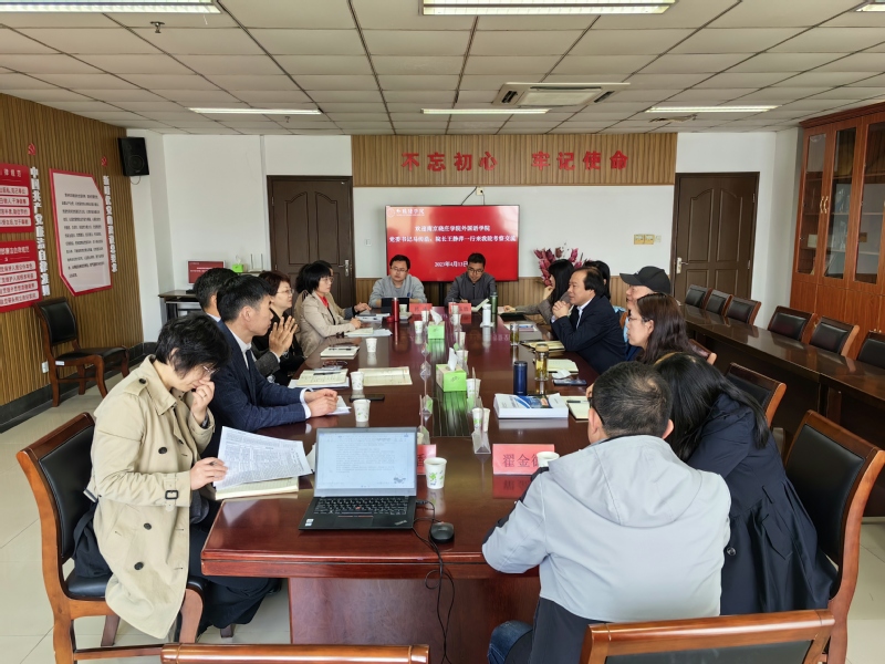 交流中,双方产生了很多共识,如党建与学科、专业建设,要双融双促。杨书记介绍了该院的党建以“五个一”先锋创建活动作为抓手,取得了较好的效果。双方一致认为,外语专业学生高质量就业要彰显专业特色,引导和鼓励学生出国出境求学,不但要转变学生的就业观念,更要做好家校沟通,做好家长的就业观念转变。对于师范生的实践教学环节安排和评价等,郭院长介绍了该院举措,考虑不同学生的发展目标,分类精准安排学生去往不同类型、要求和层次的中小学开展毕业实习。