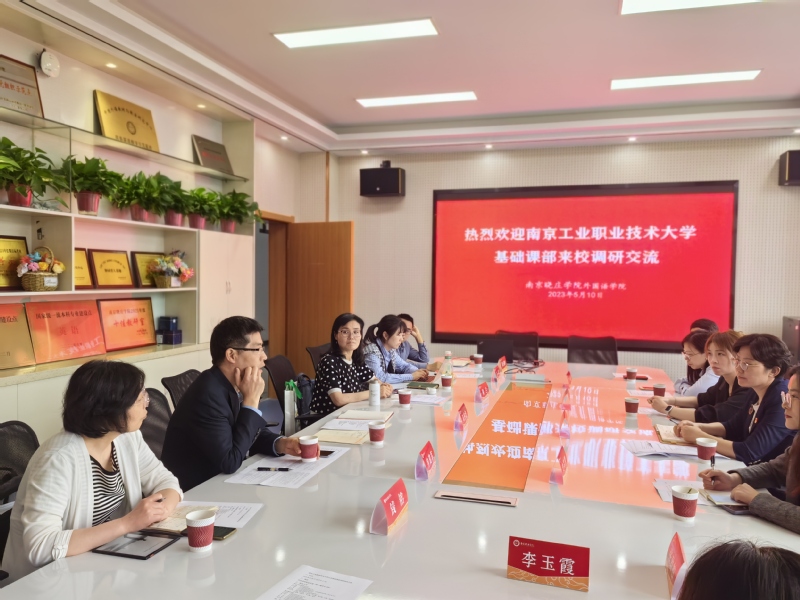 2023年5月10日下午,南京工业职业技术大学公共基础课部副主任江颖一行来到外国语学院调研,我院党总支书记、院长助理、大外教研室主任、教师第一支部书记和实验室负责人参加了调研交流会。