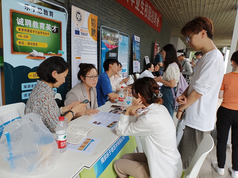 本次招聘会共有包括南京苏创艺术培训有限公司、江苏在学信息科技有限公司、南京爱思哲教育培训中心、南京瑞科翻译有限公司、中江天仕宸国际集团、珍岛信息技术(上海)股份有限公司、扬州美途教育咨询有限公司等30多家企业参会,覆盖教育培训、外贸商务、翻译等领域。