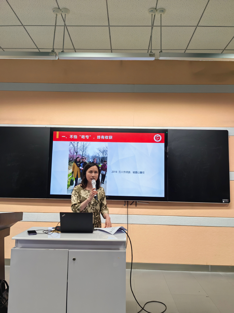朱老师幽默风趣地和大家分享了五点感悟。她的第一个感悟就是不怕“吃亏”,终究吃不了亏!她感恩每一步成长中领导和同事的鼓励和帮助。英语师范专业认证这座大山,对朱老师是挑战,同时也让大家看到了她坚韧不拔,不怕失败,严谨细致的品质和作风。对于身体健康的人来说师范专业认证这项工作是投入更多的精力和时间,但是对于身患多种慢性病,每天要吃多种药物的朱老师来说,要克服一般人难以承受的身心考验。英语师范专业首次申请认证,没有顺利进入专家进校的环节,此后又叠加新冠疫情,使得这项工作困难重重,一波三折,而朱老师却越挫越勇,专家进场时,她先后4次接受专家访谈,均应付自如,大会上15分钟的自评报告补充说明,一气呵成,出色的表现迎来好评如潮!围绕师范专业认证朱老师谈了她第二、第三和第四个感悟:“面对挑战,迎难而上;面对失败,敢于再来;坚持到底,就是胜利!”最后,朱老师感悟到团结协作,方能攻坚。这几年,她与团队老师们合作,完成了一项项艰巨任务,也常被老师们的团队精神所感动!常常加班讨论至深夜,一遍遍修订课程大纲、计算达成度,全力配合、毫无怨言。