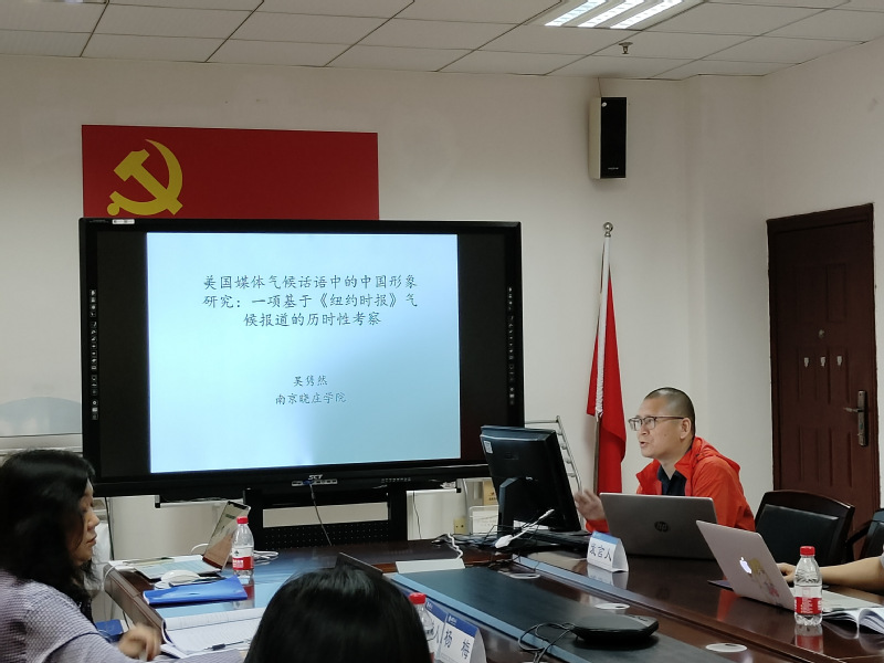 本次论坛为期两天,共设置了5个专题分会场。针对中国气候治理的国际传播,吴隽然老师在分会场二作了题为《美国媒体气候话语中的中国形象研究:一项基于<纽约时报>的历时性考察》的报告。报告以美国媒体气候话语所形塑的中国形象为切入点,论述了如何在气候治理问题上与西方进行气候话语斗争的重要性、必要性与具体实施路径。