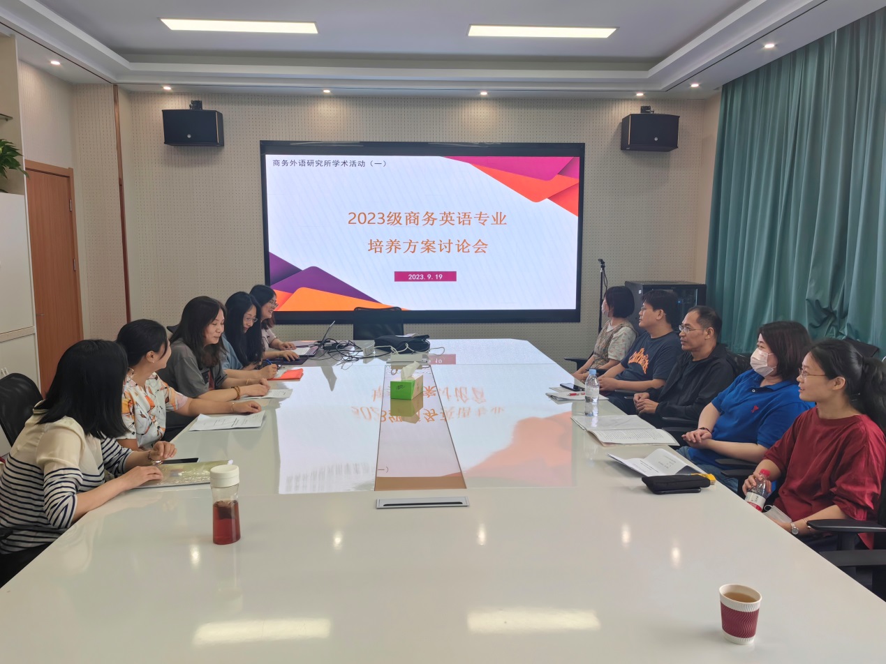 9月19日,商务英语教研室暨商务外语研究所开展专业建设研讨,就2023商务英语专业培养方案进行讨论。