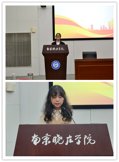 20英语师范2班朱靖雯同学作为老生代表发言,她回顾了自己的大学生活,鼓励新生积极参加学科竞赛,参与社会实践活动,做好职业生涯规划,坚守初心,勇往直前。23商务英语1班周雪稞同学作为新生代表进行发言,她分享了来到外国语学院学习生活的感悟,表示会做好学习生活规划,勇于实践,挺膺担当,坚持向美向善向上的价值追求,彰显青春的朝气锐气。