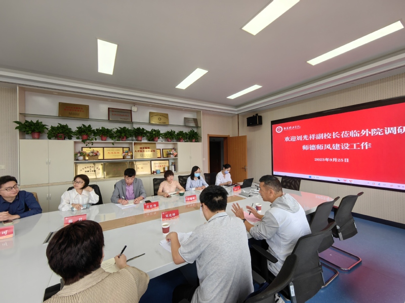 9月25日上午,刘光祥副校长来到外国语学院,针对师德师风建设工作开展专题调研,外国语学院党政领导、专业负责人、教研室主任、辅导员和青年教师代表参加了调研会议。