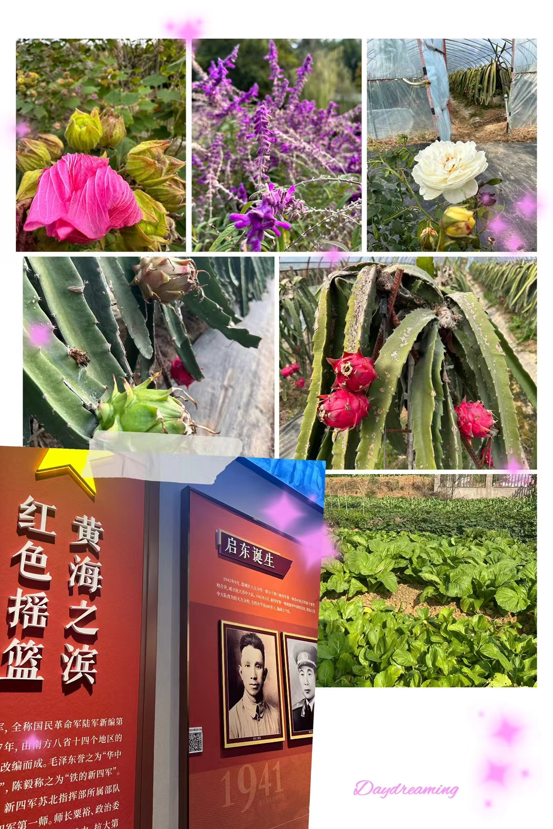 28日上午,为了深入学习中国革命历史,弘扬红色文化,增强教职员工之间的凝聚力和团队合作精神,工会和党员教职工一起来到溧水抗大九分校历史陈列馆参观学习,了解了抗大发展和壮大的过程,重温了那段艰难的岁月,深受教育。接着,工会带老师们参观溧水社会主义新农村的建设,来到当地果园,这里长着红艳艳的火龙果、香喷喷的雪梨和金灿灿的橙子等,一派丰收的景象。