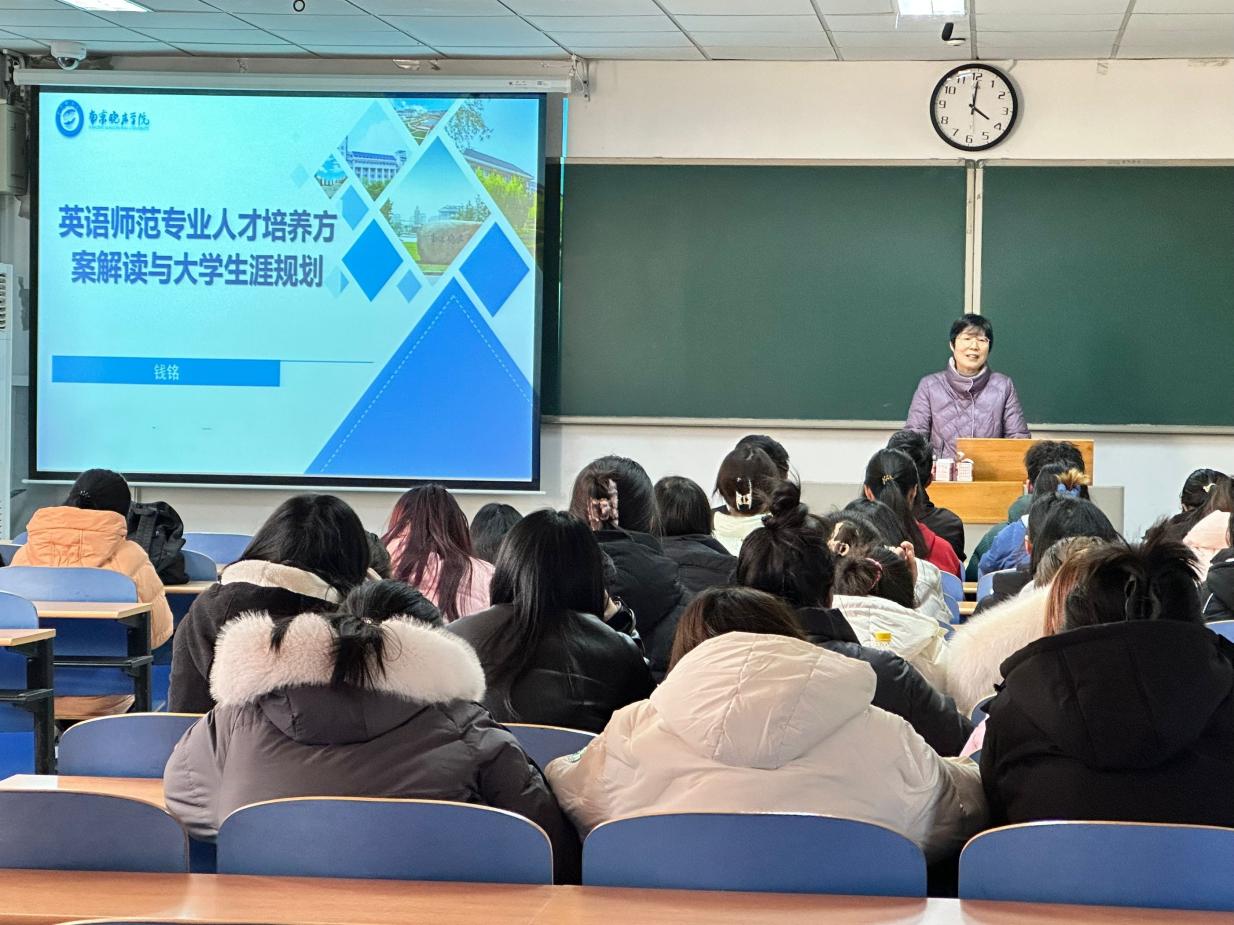 2024年1月12日,外国语学院英语师范班“人才培养方案解读与大学生涯规划”主题讲座在行知组团E202展开。本次讲座由外国语学院英语师范教研室组织、英语师范专业负责人钱铭老师主讲,主要包括“大学生涯规划”,“人才培养方案解读”和“自主学习与个人发展”三个方面。