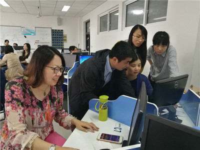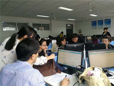 2018年5月21日下午,外国语学院大学英语教研室在行A409大学英语自主学习中心举办在线考试题库建设培训会。本次培训会邀请了外研社北京外研在线教育科技有限公司的技术人员来校进行在线考试题库建设的培训与指导。首先由技术人员系统介绍Itest测试系统题库结构、题型等,接着就题库试题录入、试卷模板和试卷组卷等环节进行了详细的技术指导。培训结束后,教研室全体教师分工合作,现学现用,现场进行题库试题输入,为期末考试提前做好准备。此次培训会准备充分,老师们积极参与,取得了良好的培训效果。