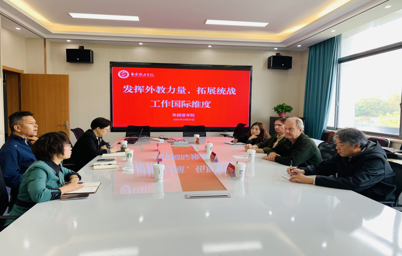 会上,外国语学院党政领导和外籍教师通过日语、英语和德语进行了友好的交流和文化探讨。此次会议,我院通过联合外籍教师的力量,进一步拓展了统战工作的国际维度。
